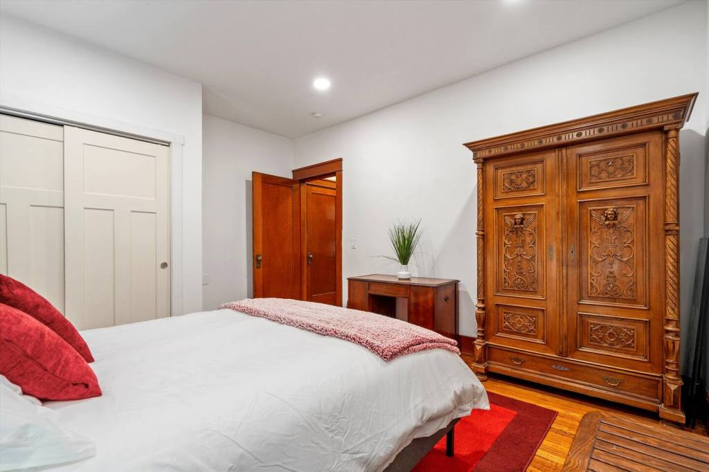 Downtown is a five to ten minute walk. Or e-scooters are usually located next to gas station 1/2 block to the West. Parking is located on North side of home. Guest is allowed one parking stall unless you have two small cars you can park one behind the other. Additional street parking on South side with staircase leading to the home. Digital code to enter is on door. The only entrance is on the North side. The door will have an ‘N’ on it.