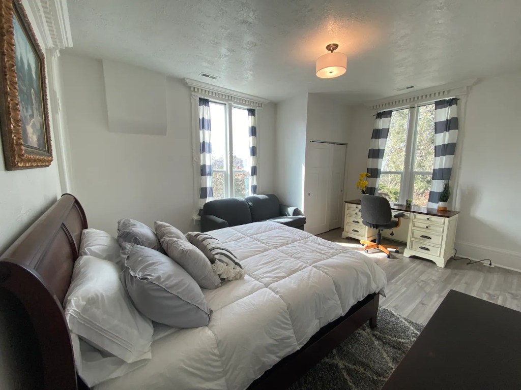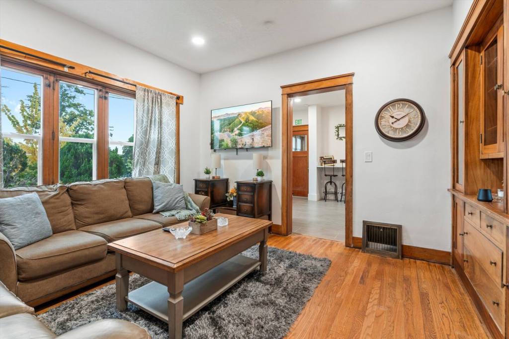 Enjoy this one-of-a-kind historic restored home as your own home away from home. It’s a perfect getaway for any special occasion or for any traveling business professional. Close to many ski resorts and hiking trails! Enjoy hardwood floors, 55″ TV, WIFI, new bathroom, leather couch, quartz countertops, stainless steel appliances! This home is split into two rental-able units but very private! Close freeway access and close to all the best restaurants and Ogdens famous historic district.